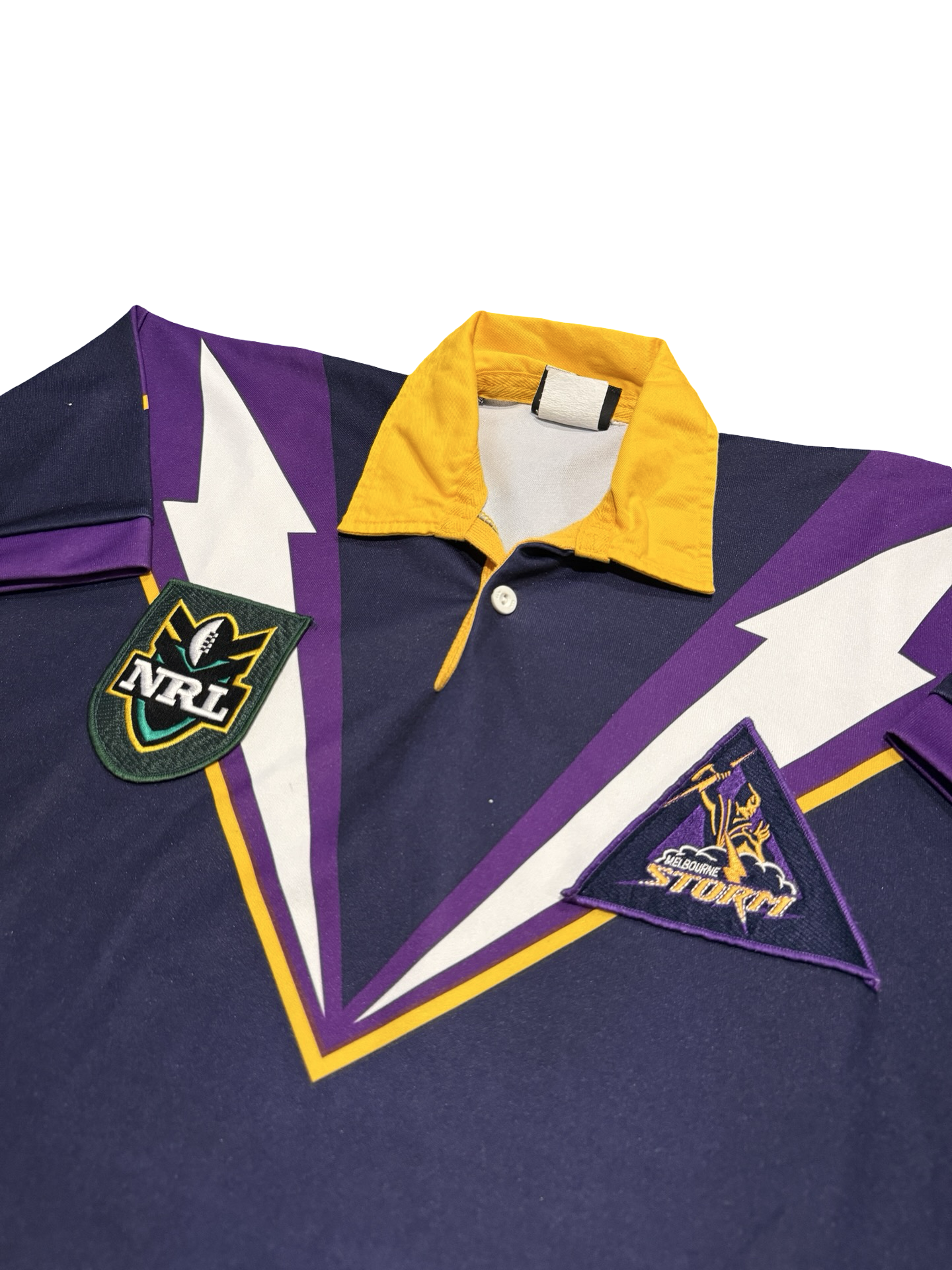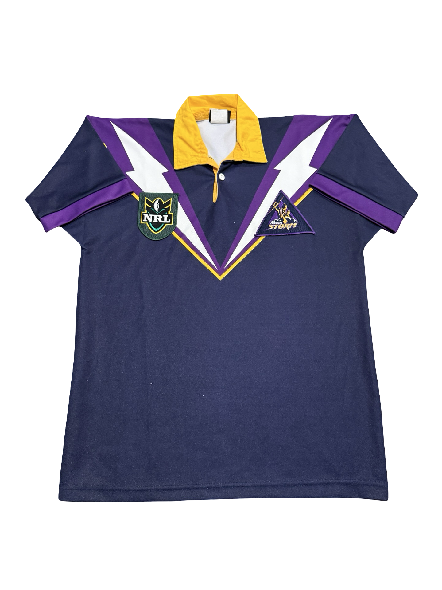 Shop › Vintage 1998 Melbourne Storm NRL Jersey - Large Image 1 of 4 Image 2 of 4 Image 3 of 4 Image 4 of 4 Vintage 1998 Melbourne Storm NRL Jersey - Large $145.00 Brand: Canterbury of New ZealandIn good condition. Some pulls pictures.Size: Large Shoulder to hem: 75cmPit to pit: 55cm Add To Cart Added! Brand: Canterbury of New ZealandIn good condition. Some pulls pictures.Size: Large Shoulder to hem: 75cmPit to pit: 55cm